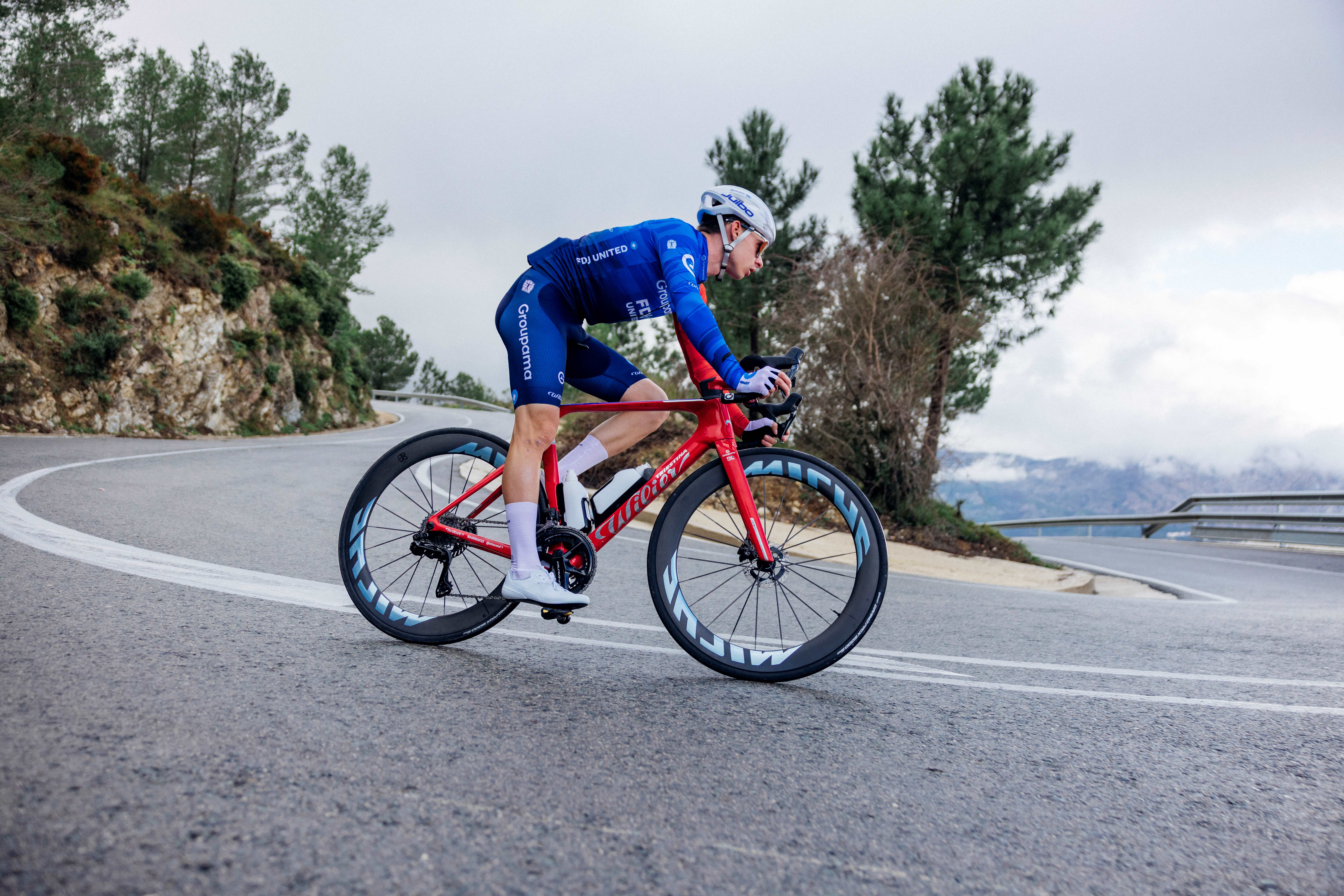 A co říkáte na nové FILANTE SLR ID2 v týmové barvě GROUPAMA FDJ - FIRELIGHT RED s novými koly MICHE DEVA RD s karbonovými dráty?