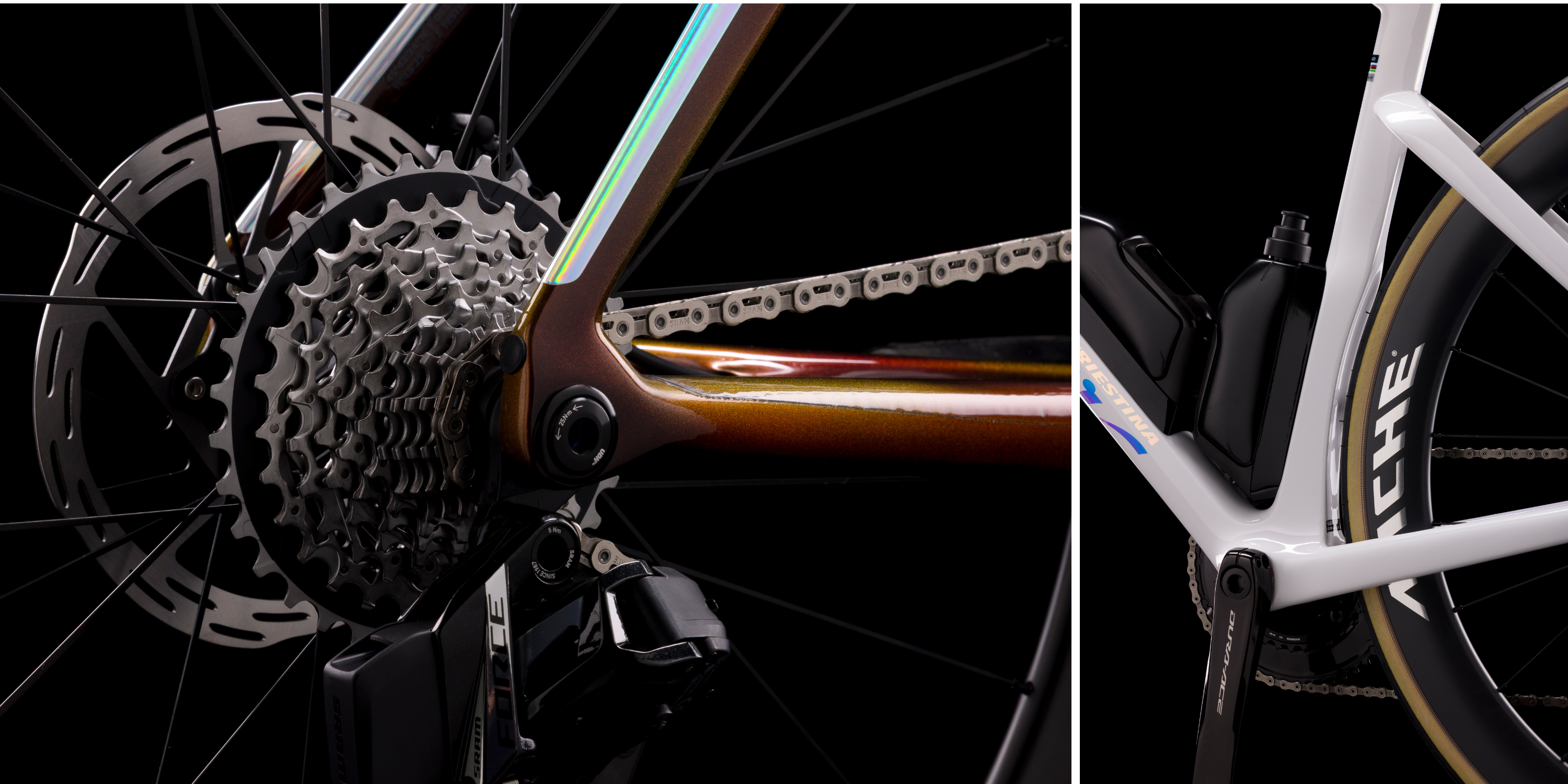Baterie systému Shimano Di2 byla přesunuta do oblasti středového pouzdra, čímž se snížilo těžiště kola a usnadnila údržba.